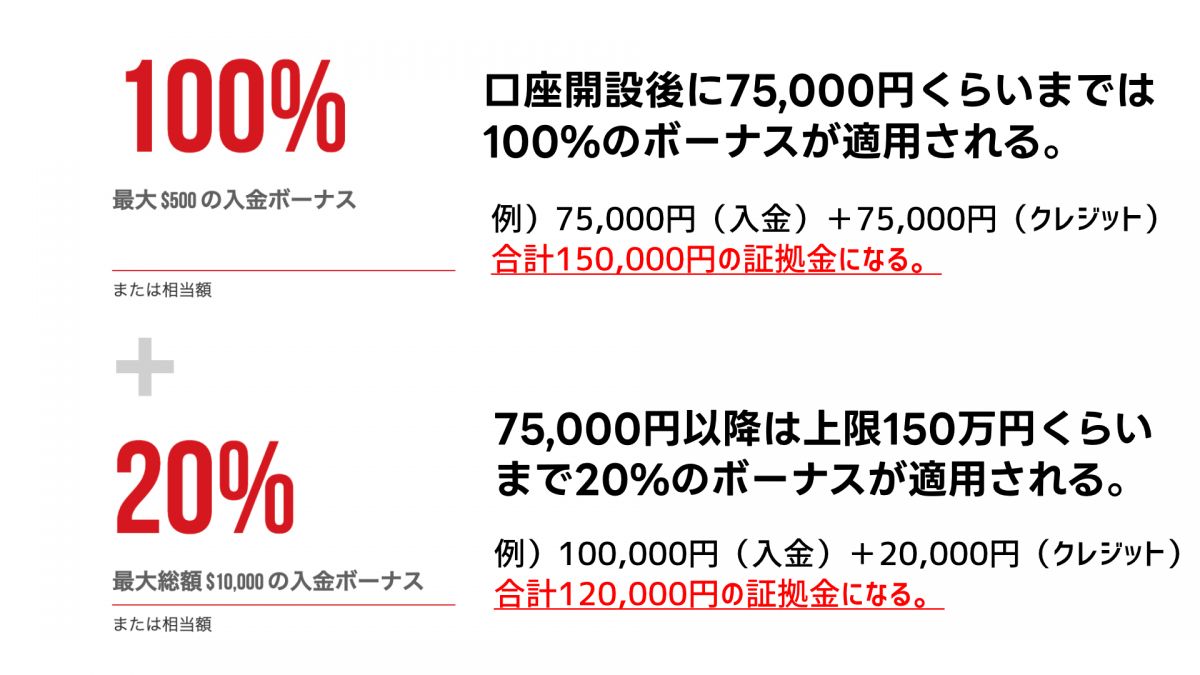 入金ボーナスとは入金金額に対してクレジットが付与されるキャンペーンです。
