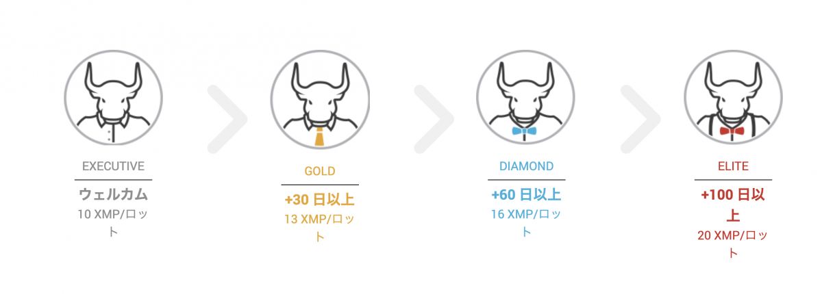 1番最初のランク「EXECUTIVE」から始まり取引活動期間でランクが上がっていきます。
